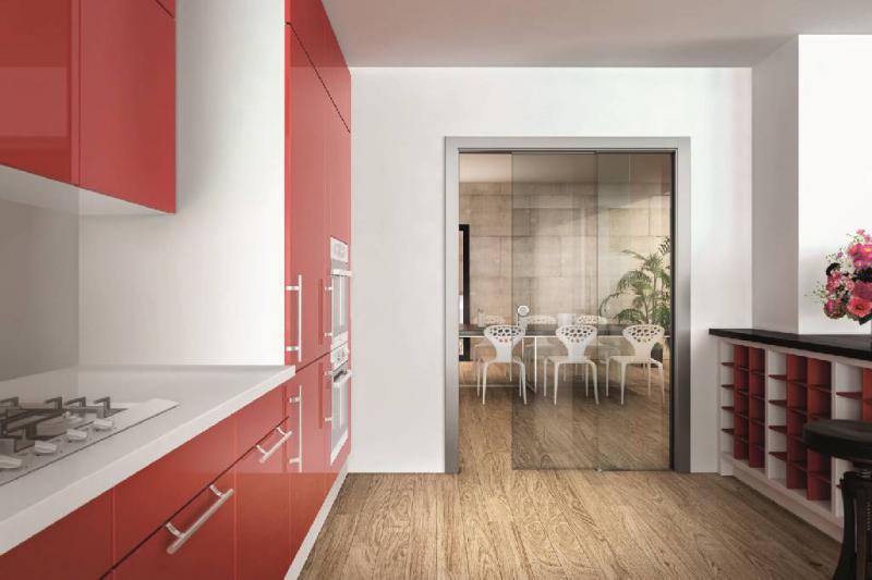 Brevetto esclusivo Scrigno, è il controtelaio nato dallo sviluppo di base e Granluce. Capace di contenere all'interno 2 porte in vetro scorrevoli a scomparsa collegate tra loro da un sistema a trascinamento.