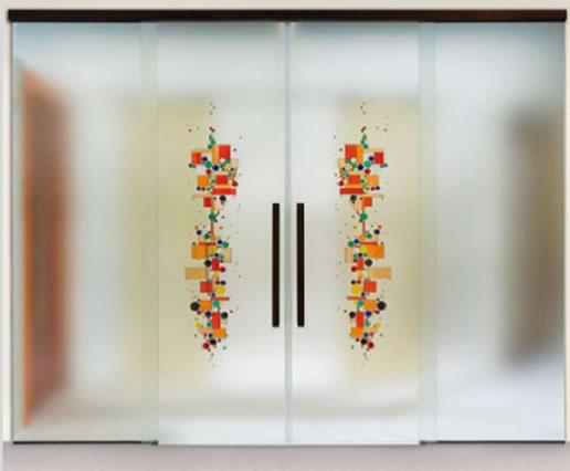Porta ad ante doppie indipendenti su sistema K-705 Vetro satinato dipinto a mano con decoro Carnevale